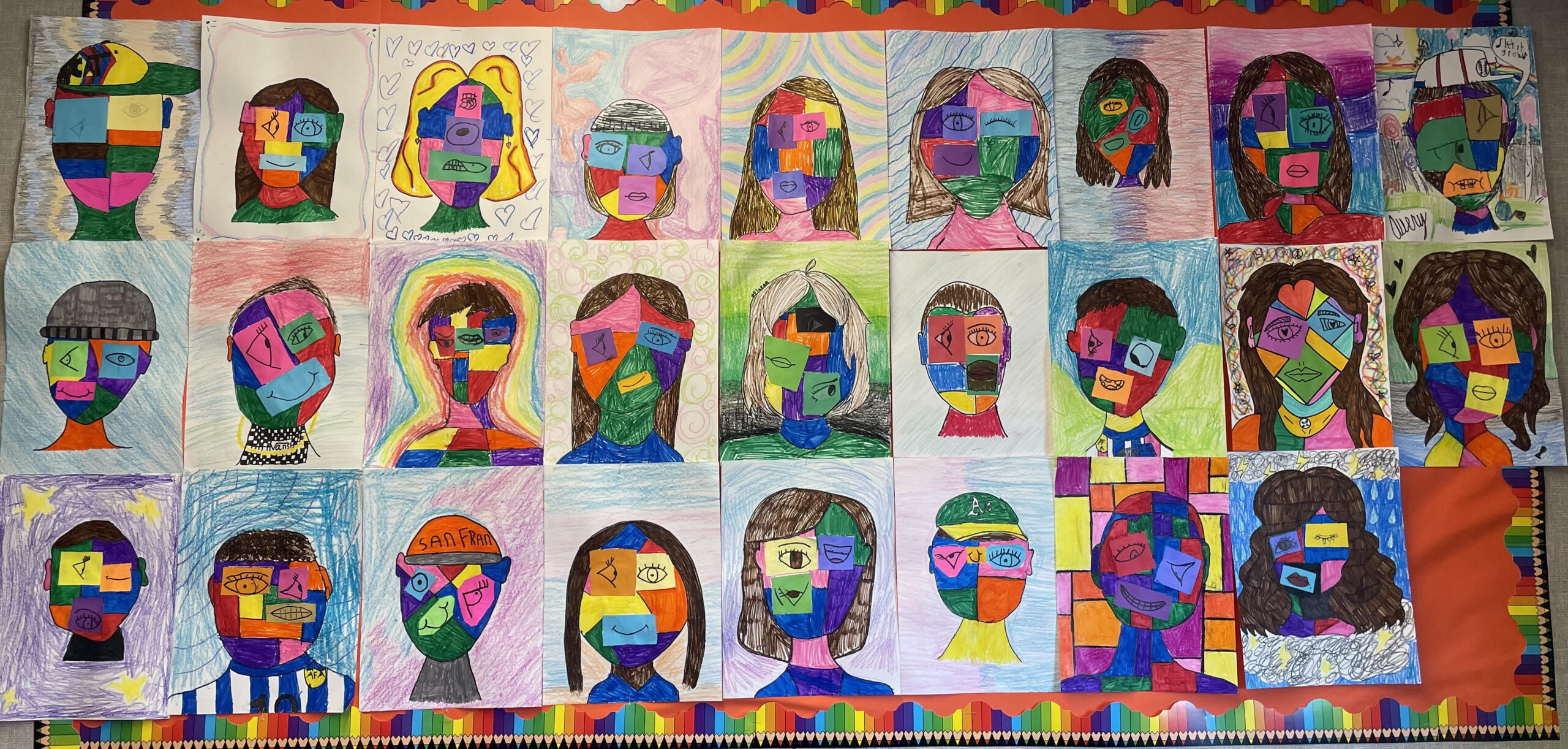 Pictured is our Great Pumpkin art hanging in the classroom!