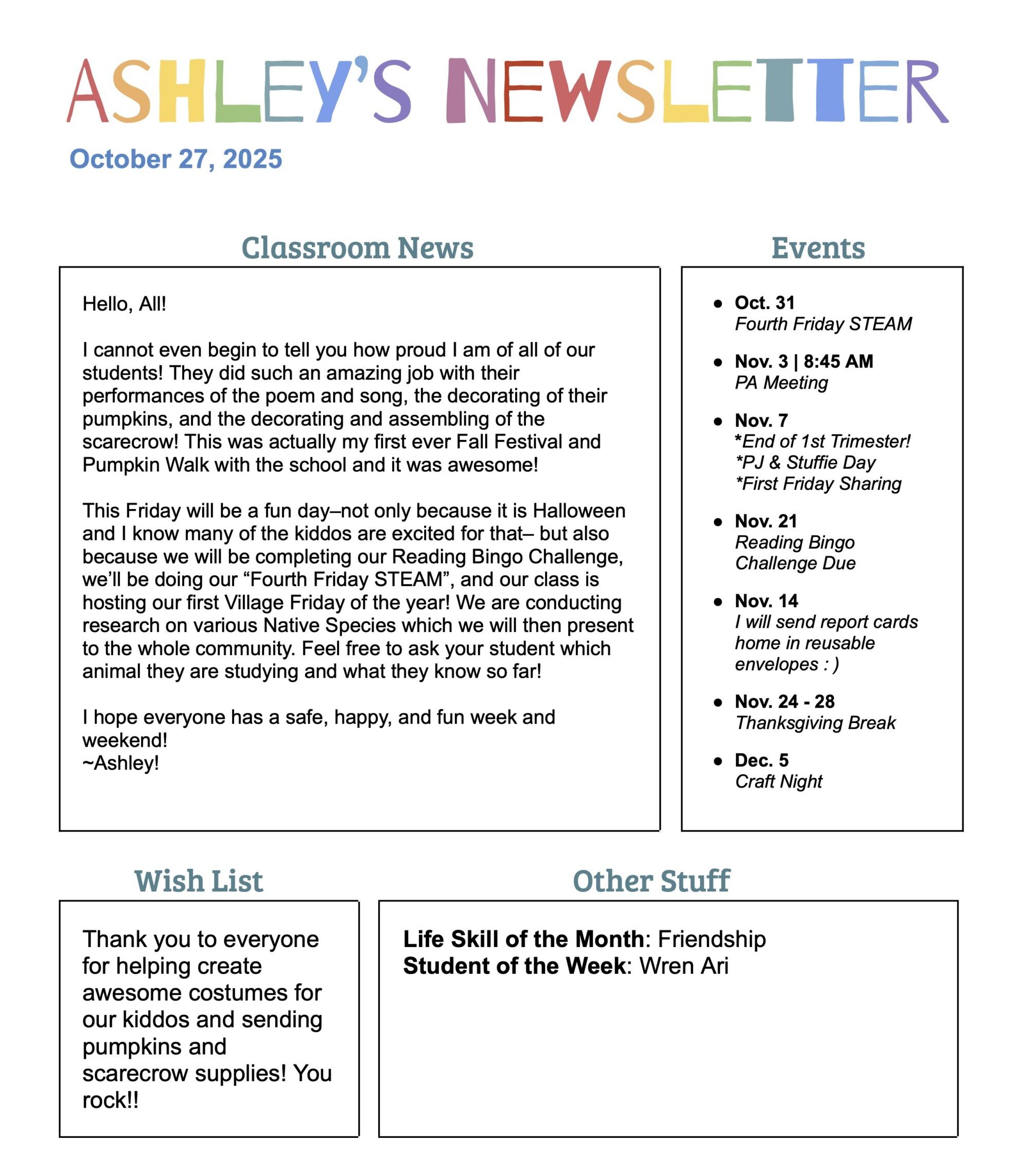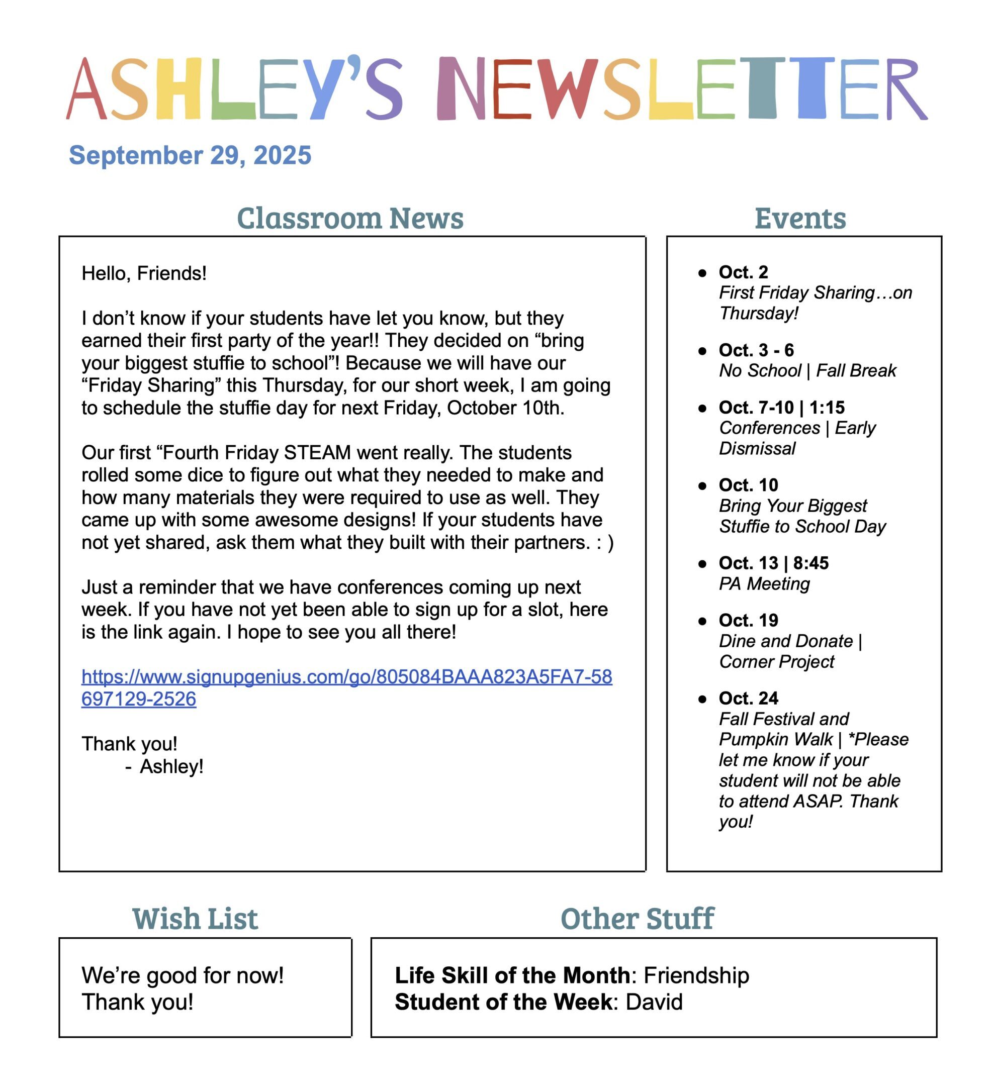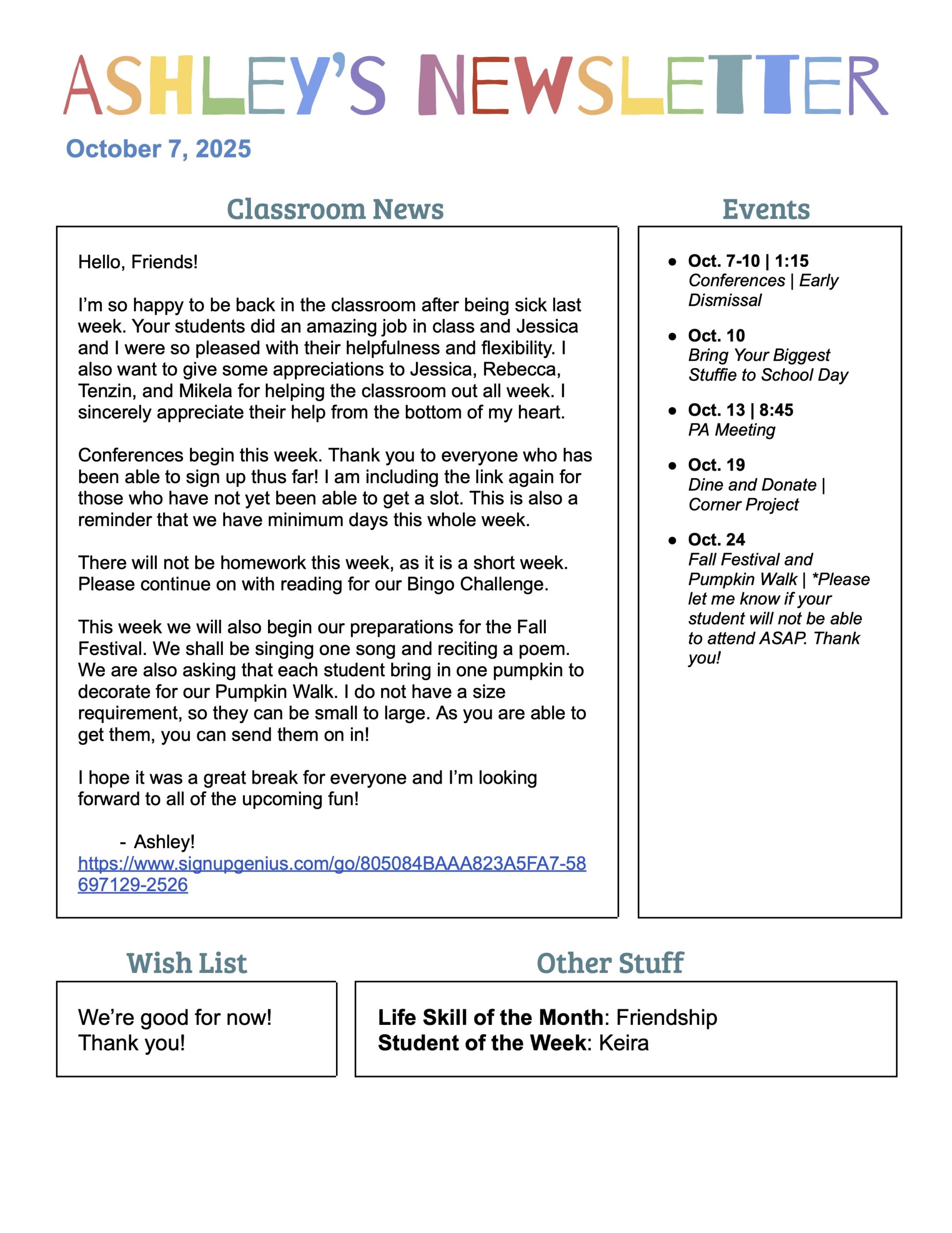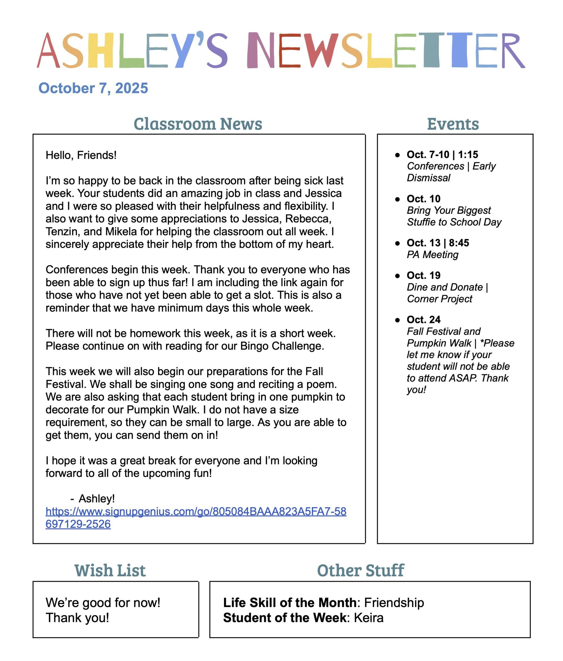 We have a wish list on Amazon for books for our classroom! If you would like to contribute, every little bit will help! Thank youl lam posting the actual web address here, but the link will be in the class emaill